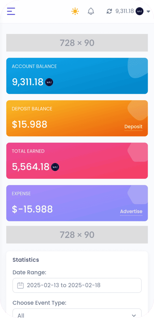 Get paid to view advertisements. Earn crypto by simply watching short ads.